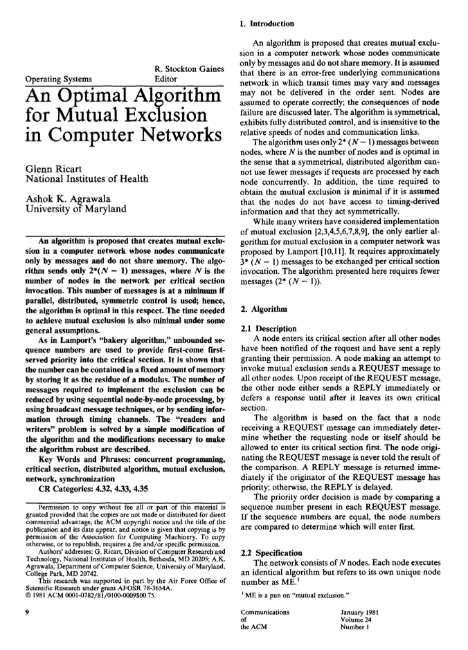 Entre 0 et 2(n-1) messages par processus souhaitant entrer en SC.